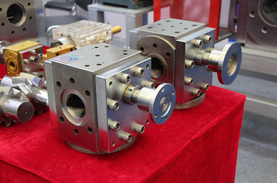 熔體泵頭主要由泵殼、主動齒輪、從動齒輪、滑動軸承、前后端板、墳料密封等組成。熔體泵利用熔體自潤滑,清動軸承上開設有潤滑槽孔,其在高溫、高壓下工作,具有良好的耐磨性。